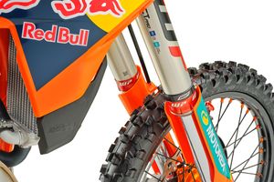 Engineering throughout the intake, airbox, and fuel-injection systems ensures optimal throttle response and efficiency. KTM continues its collaboration with Akrapovic, fitting each Factory Edition with a lightweight titanium slip-on muffler that meets the latest FIM and AMA sound regulations without compromising the signature KTM power delivery.
